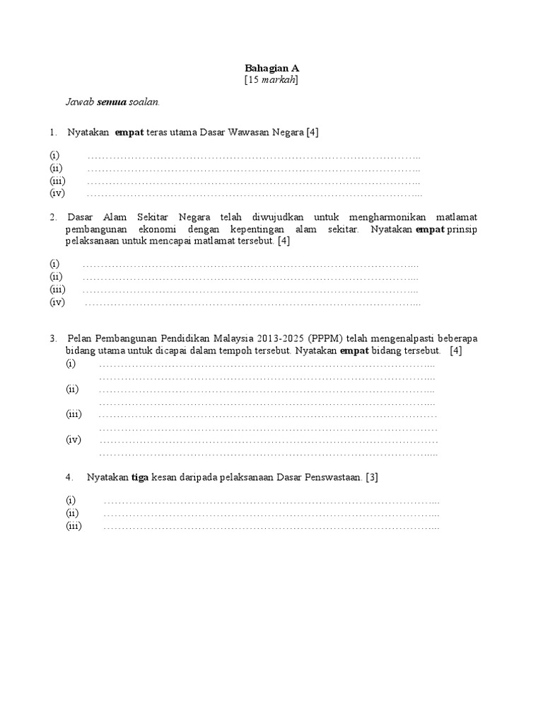 Checklist Soalan Dan Jawapan Pengajian Am Soalan Beserta Jawapan Checklist Pengajian Am Bahagian B