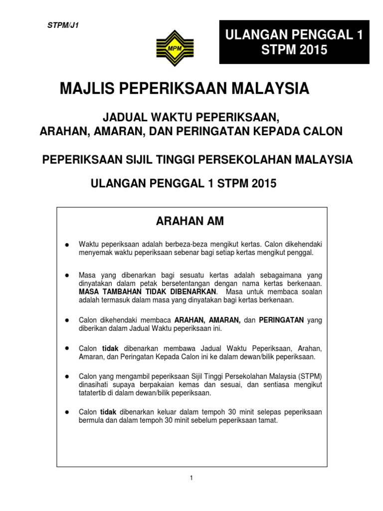 Jadual Peperiksaan Ulangan Penggal 1 Stpm 2015 Pdf Pdf